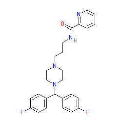 | SMILES | O=C(NCCCN1CCN(C(c2ccc(F)cc2)c2ccc(F)cc2)CC1)c1ccccn1 |