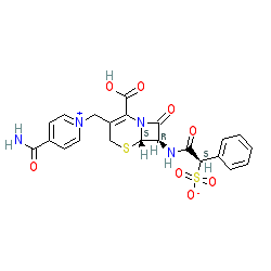 | SMILES | NC(=O)c1cc[n+](CC2=C(C(=O)O)N3C(=O)[C@@H](NC(=O)[C@H](c4ccccc4)S(=O)(=O)[O-])[C@@H]3SC2)cc1 |