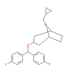 | SMILES | Fc1ccc(C(OC2CC3CCC(C2)N3CC2CC2)c2ccc(F)cc2)cc1 |