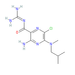 | SMILES | CC(C)CN(C)c1nc(N)c(C(=O)N=C(N)N)nc1Cl |