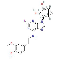 | SMILES | COc1cc(CCNc2nc(I)nc3c2ncn3[C@H]2[C@H](O)[C@H](O)[C@@H]3C[C@@H]32)ccc1O |