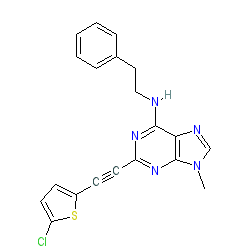 | SMILES | Cn1cnc2c(NCCc3ccccc3)nc(C#Cc3ccc(Cl)s3)nc21 |