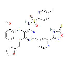 SMILES | COc1ccccc1Oc1c(NS(=O)(=O)c2ccc(C)cn2)nc(-c2ccnc(-c3noc(=S)[nH]3)c2)nc1OCC1CCCO1 |