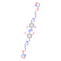 | SMILES | C[N+](C)(CC#CCOC1=NOCC1)Cc1cc(F)c(/N=N\c2c(F)cc(C[N+](C)(C)CC#CCOC3=NOCC3)cc2F)c(F)c1 |