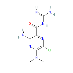 | SMILES | CN(C)c1nc(N)c(C(=O)NC(=N)N)nc1Cl |