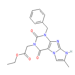| SMILES | CCOC(=O)Cn1c(=O)c2c(nc3[nH]c(C)cn32)n(Cc2ccccc2)c1=O |