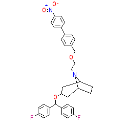 | SMILES | O=[N+]([O-])c1ccc(-c2ccc(COCCN3C4CCC3CC(OC(c3ccc(F)cc3)c3ccc(F)cc3)C4)cc2)cc1 |
