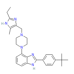 SMILES | CCc1nc(CN2CCN(c3cccc4[nH]c(-c5ccc(C(C)(C)C)cc5)nc34)CC2)c(C)[nH]1 |