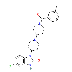 | SMILES | Cc1cccc(C(=O)N2CCC(N3CCC(n4c(=O)[nH]c5cc(Cl)ccc54)CC3)CC2)c1 |