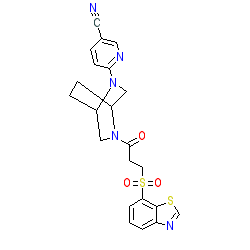 | SMILES | N#Cc1ccc(N2CC3CCC2CN3C(=O)CCS(=O)(=O)c2cccc3ncsc23)nc1 |