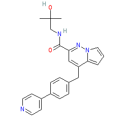 | SMILES | CC(C)(O)CNC(=O)c1cc(Cc2ccc(-c3ccncc3)cc2)c2cccn2n1 |