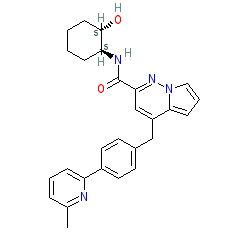 | SMILES | Cc1cccc(-c2ccc(Cc3cc(C(=O)N[C@H]4CCCC[C@@H]4O)nn4cccc34)cc2)n1 |