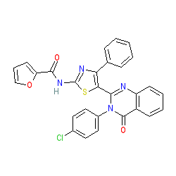 | SMILES | O=C(Nc1nc(-c2ccccc2)c(-c2nc3ccccc3c(=O)n2-c2ccc(Cl)cc2)s1)c1ccco1 |
