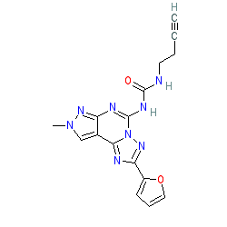 | SMILES | C#CCCNC(=O)Nc1nc2nn(C)cc2c2nc(-c3ccco3)nn12 |