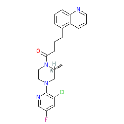 | SMILES | C[C@@H]1CN(c2ncc(F)cc2Cl)CCN1C(=O)CCCc1cccc2ncccc12 |