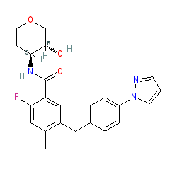 | SMILES | Cc1cc(F)c(C(=O)N[C@H]2CCOC[C@@H]2O)cc1Cc1ccc(-n2cccn2)cc1 |
