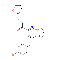| SMILES | O=C(NCC1CCCO1)c1cc(Cc2ccc(Br)cc2)c2cccn2n1 |