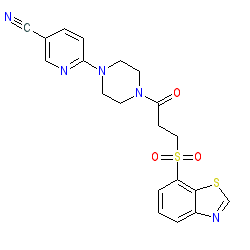 | SMILES | N#Cc1ccc(N2CCN(C(=O)CCS(=O)(=O)c3cccc4ncsc34)CC2)nc1 |
