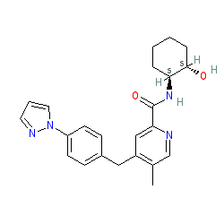 | SMILES | Cc1cnc(C(=O)N[C@H]2CCCC[C@@H]2O)cc1Cc1ccc(-n2cccn2)cc1 |