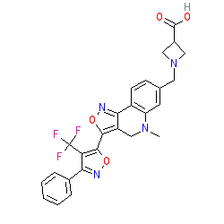 SMILES | CN1Cc2c(noc2-c2onc(-c3ccccc3)c2C(F)(F)F)-c2ccc(CN3CC(C(=O)O)C3)cc21 |
