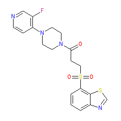 | SMILES | O=C(CCS(=O)(=O)c1cccc2ncsc12)N1CCN(c2ccncc2F)CC1 |