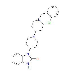 | SMILES | O=c1[nH]c2ccccc2n1C1CCN(C2CCN(Cc3ccccc3Cl)CC2)CC1 |