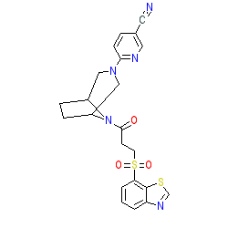 | SMILES | N#Cc1ccc(N2CC3CCC(C2)N3C(=O)CCS(=O)(=O)c2cccc3ncsc23)nc1 |