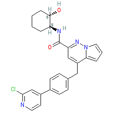 | SMILES | O=C(N[C@H]1CCCC[C@@H]1O)c1cc(Cc2ccc(-c3ccnc(Cl)c3)cc2)c2cccn2n1 |