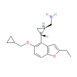 | SMILES | CCc1cc2c([C@@H]3C[C@H]3CN)c(OCC3CC3)ccc2o1 |