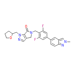 | SMILES | Cn1cc2cc(-c3cc(F)c(CN4Cc5cnn(CC6CCCO6)c5C4=O)c(F)c3)ccc2n1 |