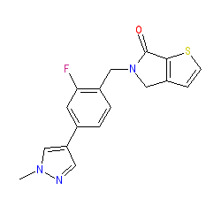 | SMILES | Cn1cc(-c2ccc(CN3Cc4ccsc4C3=O)c(F)c2)cn1 |
