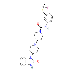 | SMILES | O=C(Nc1cccc(SC(F)(F)F)c1)N1CCC(N2CCC(n3c(=O)[nH]c4ccccc43)CC2)CC1 |