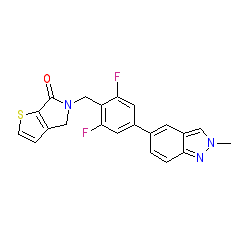 | SMILES | Cn1cc2cc(-c3cc(F)c(CN4Cc5ccsc5C4=O)c(F)c3)ccc2n1 |