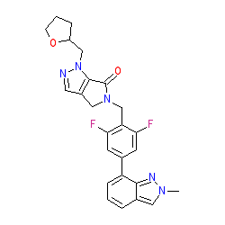 | SMILES | Cn1cc2cccc(-c3cc(F)c(CN4Cc5cnn(CC6CCCO6)c5C4=O)c(F)c3)c2n1 |