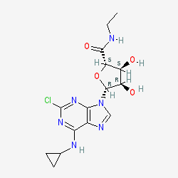 | SMILES | CCNC(=O)[C@H]1O[C@@H](n2cnc3c(NC4CC4)nc(Cl)nc32)[C@H](O)[C@@H]1O |