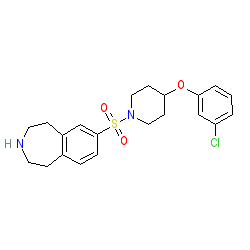 | SMILES | O=S(=O)(c1ccc2c(c1)CCNCC2)N1CCC(Oc2cccc(Cl)c2)CC1 |