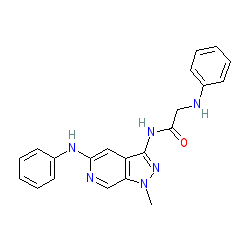 | SMILES | Cn1nc(NC(=O)CNc2ccccc2)c2cc(Nc3ccccc3)ncc21 |