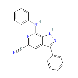 | SMILES | N#Cc1cc2c(-c3ccccc3)n[nH]c2c(Nc2ccccc2)n1 |