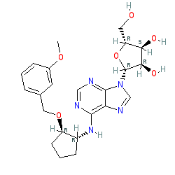 | SMILES | COc1cccc(CO[C@@H]2CCC[C@H]2Nc2ncnc3c2ncn3[C@@H]2O[C@H](CO)[C@@H](O)[C@H]2O)c1 |