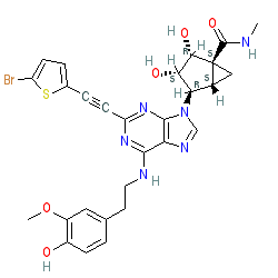 | SMILES | CNC(=O)[C@@]12C[C@@H]1[C@@H](n1cnc3c(NCCc4ccc(O)c(OC)c4)nc(C#Cc4ccc(Br)s4)nc31)[C@H](O)[C@@H]2O |