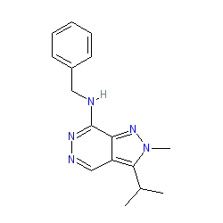 | SMILES | CC(C)c1c2cnnc(NCc3ccccc3)c2nn1C |