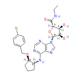| SMILES | CCNC(=O)[C@H]1O[C@@H](n2cnc3c(N[C@@H]4CCC[C@H]4OCc4ccc(Br)cc4)ncnc32)[C@H](O)[C@@H]1O |
