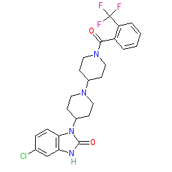 | SMILES | O=C(c1ccccc1C(F)(F)F)N1CCC(N2CCC(n3c(=O)[nH]c4cc(Cl)ccc43)CC2)CC1 |