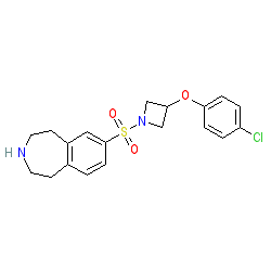 | SMILES | O=S(=O)(c1ccc2c(c1)CCNCC2)N1CC(Oc2ccc(Cl)cc2)C1 |