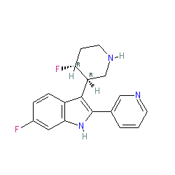 | SMILES | Fc1ccc2c([C@@H]3CNCC[C@H]3F)c(-c3cccnc3)[nH]c2c1 |