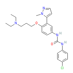 | SMILES | CCN(CC)CCCOc1ccc(NC(=O)Nc2ccc(Cl)cc2)cc1-c1ccnn1C |