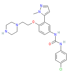 | SMILES | Cn1nccc1-c1cc(NC(=O)Nc2ccc(Cl)cc2)ccc1OCCN1CCNCC1 |