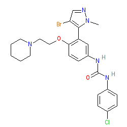 | SMILES | Cn1ncc(Br)c1-c1cc(NC(=O)Nc2ccc(Cl)cc2)ccc1OCCN1CCCCC1 |