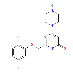 | SMILES | Cn1c(COc2cc(F)ccc2Cl)nc(N2CCNCC2)cc1=O |