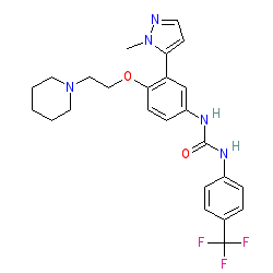 | SMILES | Cn1nccc1-c1cc(NC(=O)Nc2ccc(C(F)(F)F)cc2)ccc1OCCN1CCCCC1 |